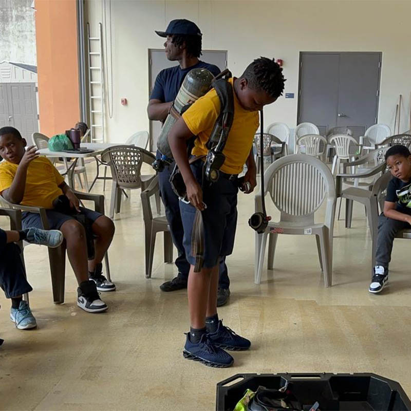 The Virgin Islands Fire and Emergency Medical Services Junior Firefighters Program gives young people the opportunity to learn valuable life skills, teamwork, and leadership while exploring a future career in public safety. Through hands-on training, community service, and mentorship from experienced professionals, our junior firefighters gain confidence and discipline while making a positive impact in their community. Participants must be a minimum of 9 years old to enroll in the program.