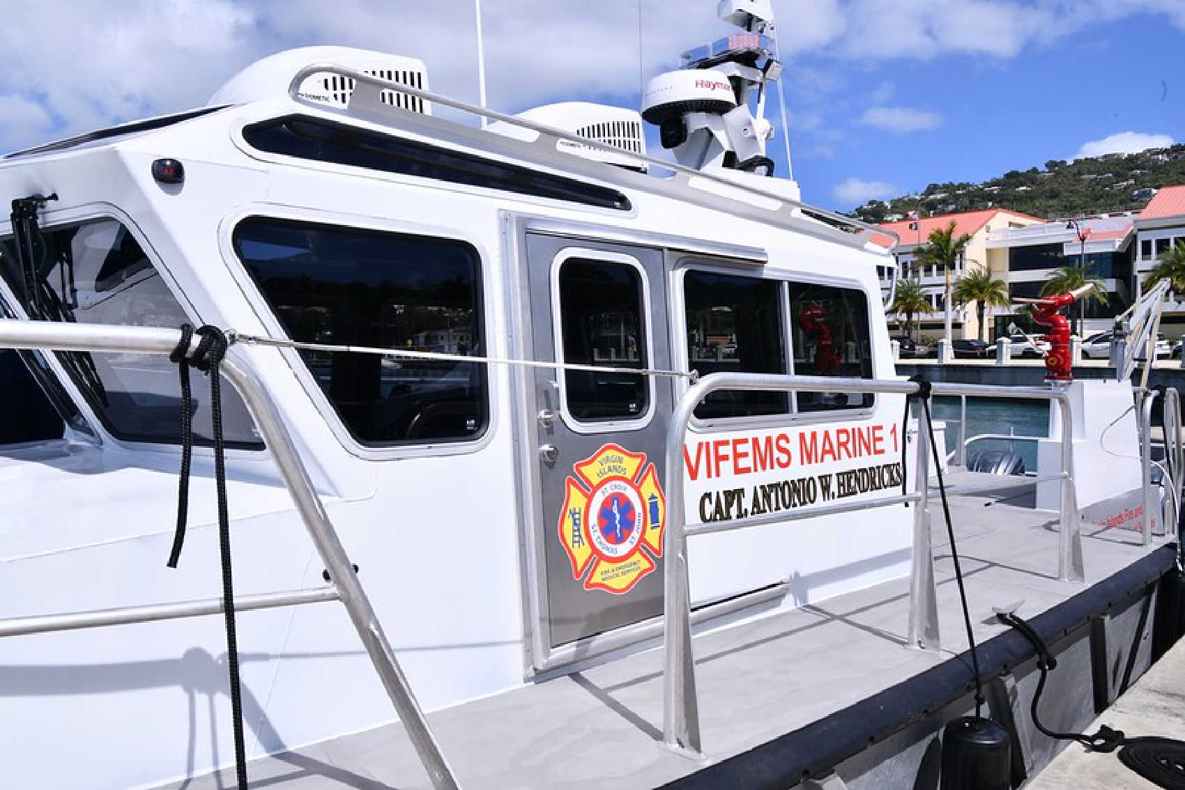 Marine 1 is VIFEMS’ fireboat, dedicated to responding to emergencies on the water and safeguarding our communities. The vessel is named in honor of Captain Antonio William Hendricks, a retiree of the Virgin Islands Fire Service prior to its integration in 2022 into what is now the Virgin Islands Fire and Emergency Medical Services (VIFEMS). Marine 1 reinforces VIFEMS’ commitment to public safety and keeping the Virgin Islands secure.